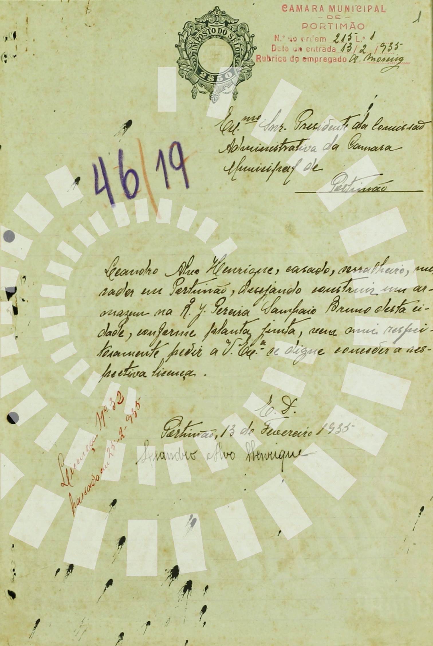 Documento PT/AMPTM/CMPTM/F-D/14/215:1935; Página 1